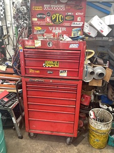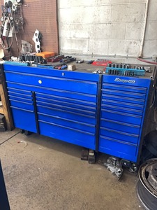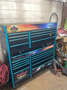 Snap on southern thunder 20 drawer locking roll around tool box 54” wide 61” tall |
