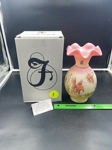 Fenton Burmese 9” vase “Veil Tail Habitat” hand painted limited edition with several signatures glows with box |