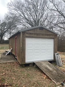 wooden storage builing to be moved approximately 11’x31’ with metal roof . to be moved after carport is removed property to be left in as same condition. electrical to be safely disconnected by buyer . 2 walk doors roll up door 2 windows wired with fuse box fluorescent lights
